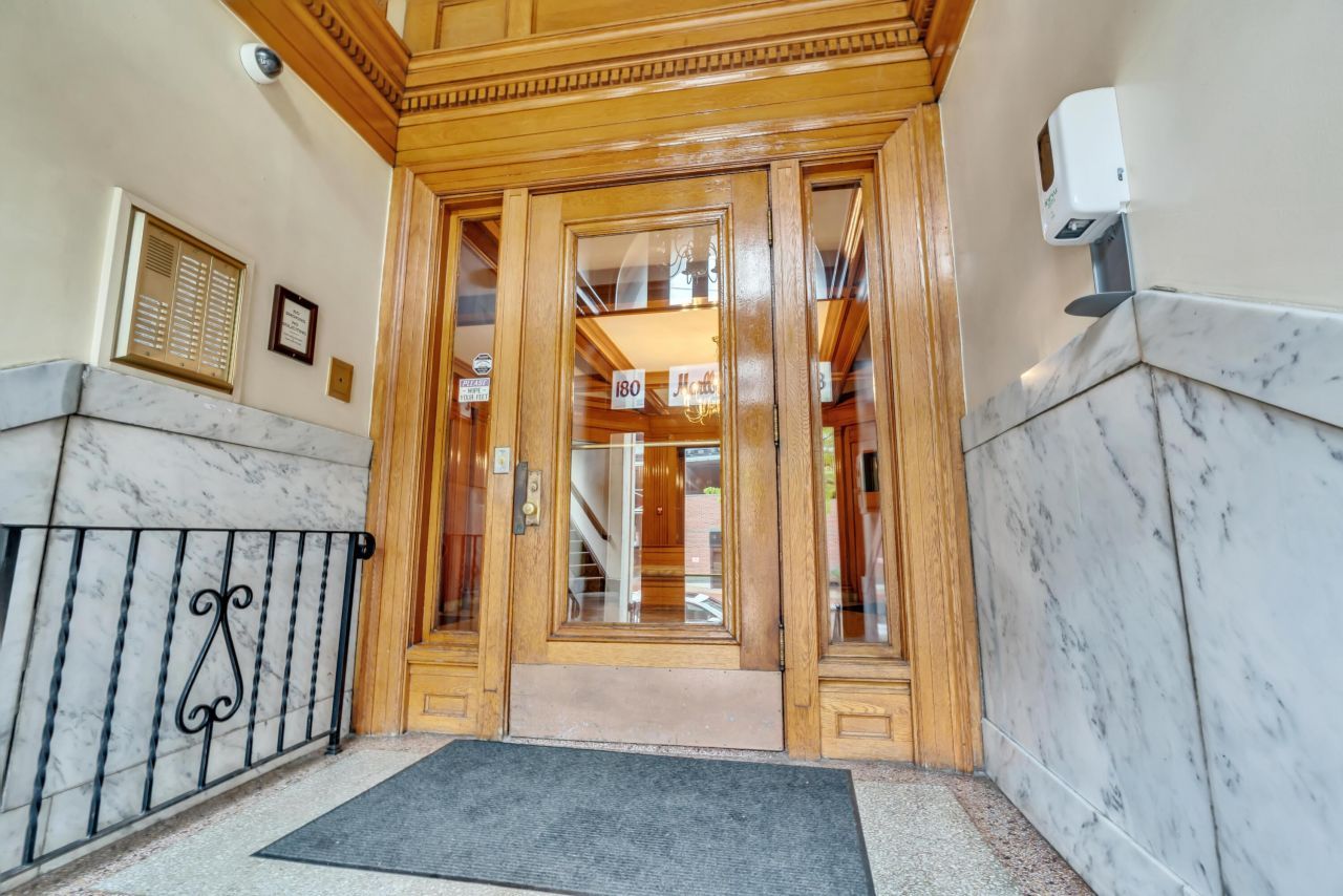 Don't miss a rare opportunity to own one of the largest units in the stunning and highly sought-after Marlborough Building. This immaculately-preserved 1914 Colonial Revival architectural gem is nestled in the heart of Portland's Arts District where restaurants, galleries, theaters and shopping are all at your doorstep. The common areas of this magnificent pre-war building feature exquisite period details such as terrazzo floors, coffered ceilings and an antique birdcage elevator. Inside the unit, a dramatic entrance gallery connects two bedrooms and a full bathroom with the main living areas of the home. Period details such as original hardwood floors, soaring ceilings, solid wood five panel doors with glass knobs, and original moldings are seamlessly blended with modern updates including a renovated kitchen and bathroom. Oversized windows flood every room with natural light with views of the city and Back Cove. Other amenities include a secure deeded storage unit, shared and fenced garden and yard space, and on-site laundry. Monthly HOA fees conveniently include heat, hot water, and trash removal. The Marlborough is a dog welcoming community with a strong association and healthy financial reserves. Leased garage parking is available directly across the street from the main entrance.